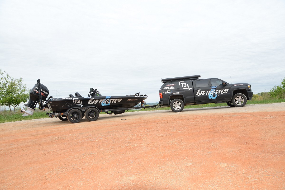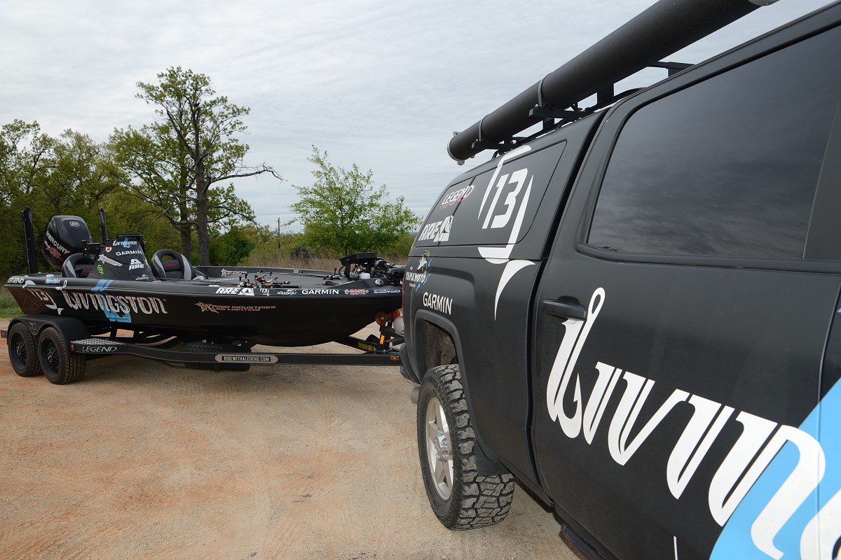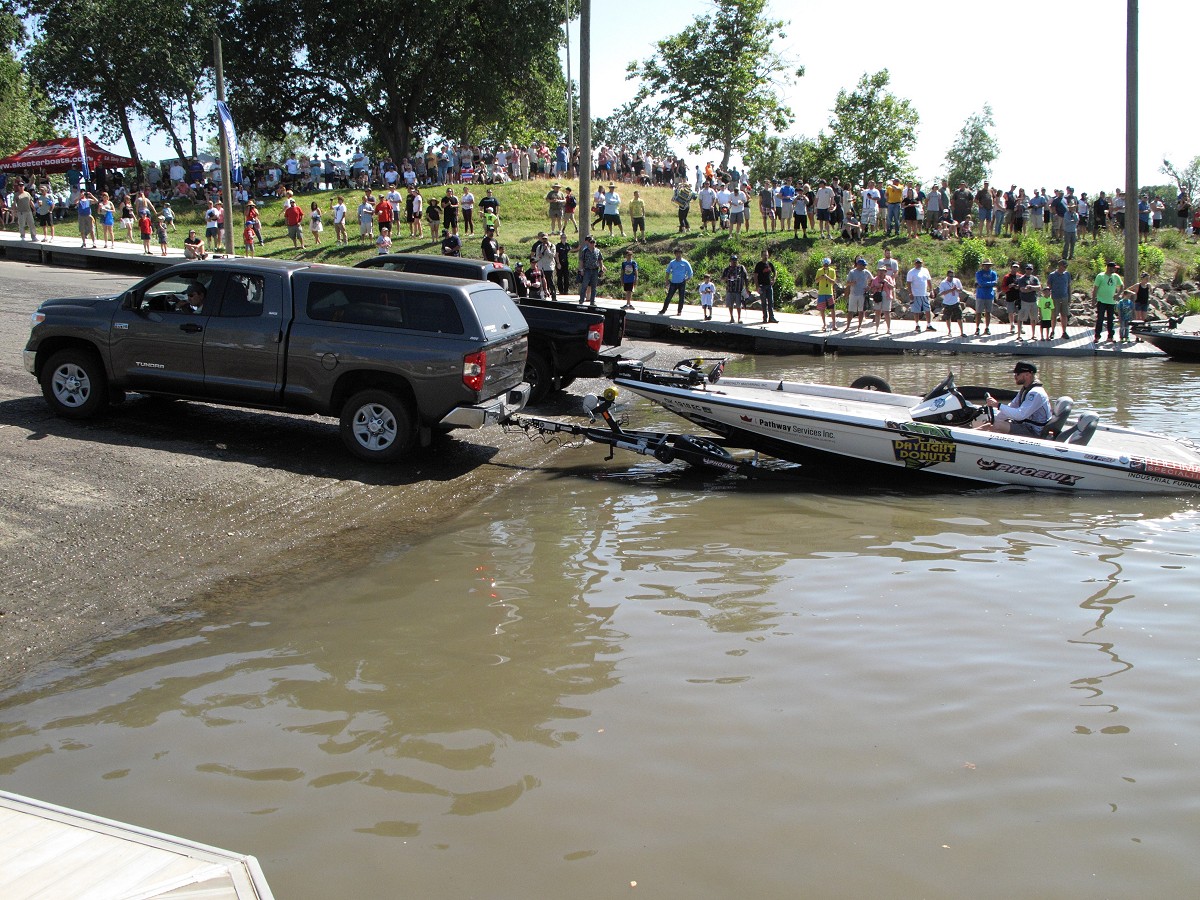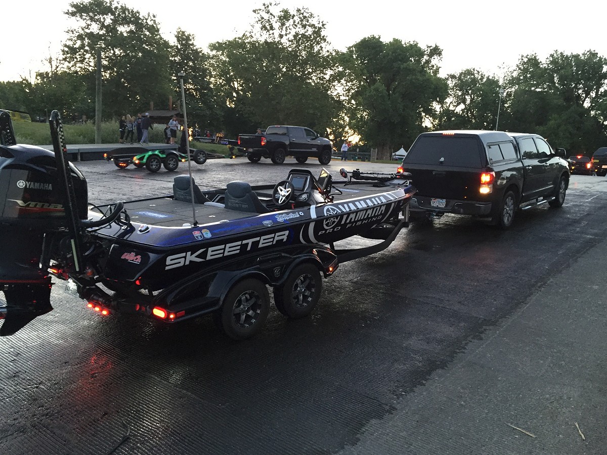Bassmaster Sacramento "Cliff Prince's truck and boat at launch"