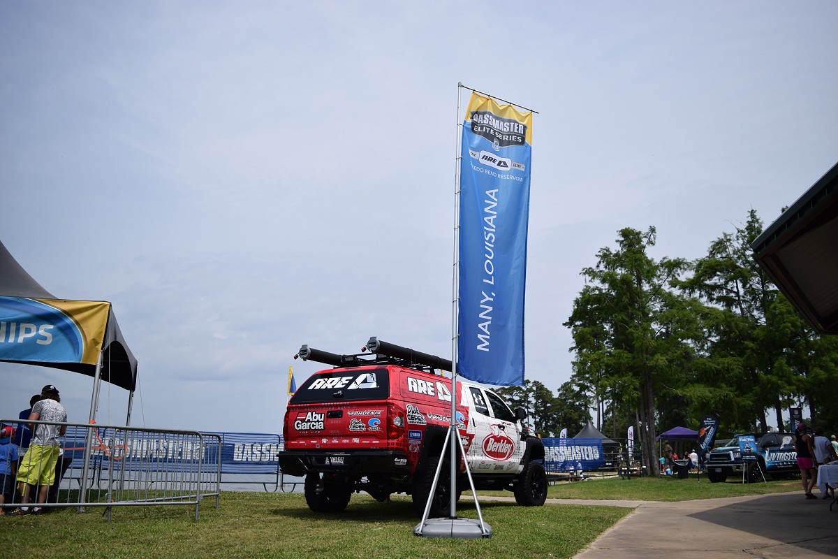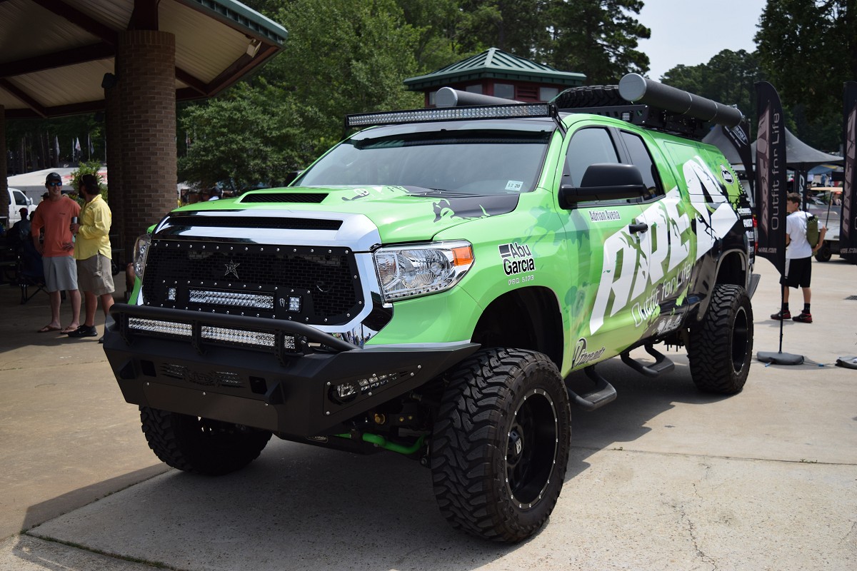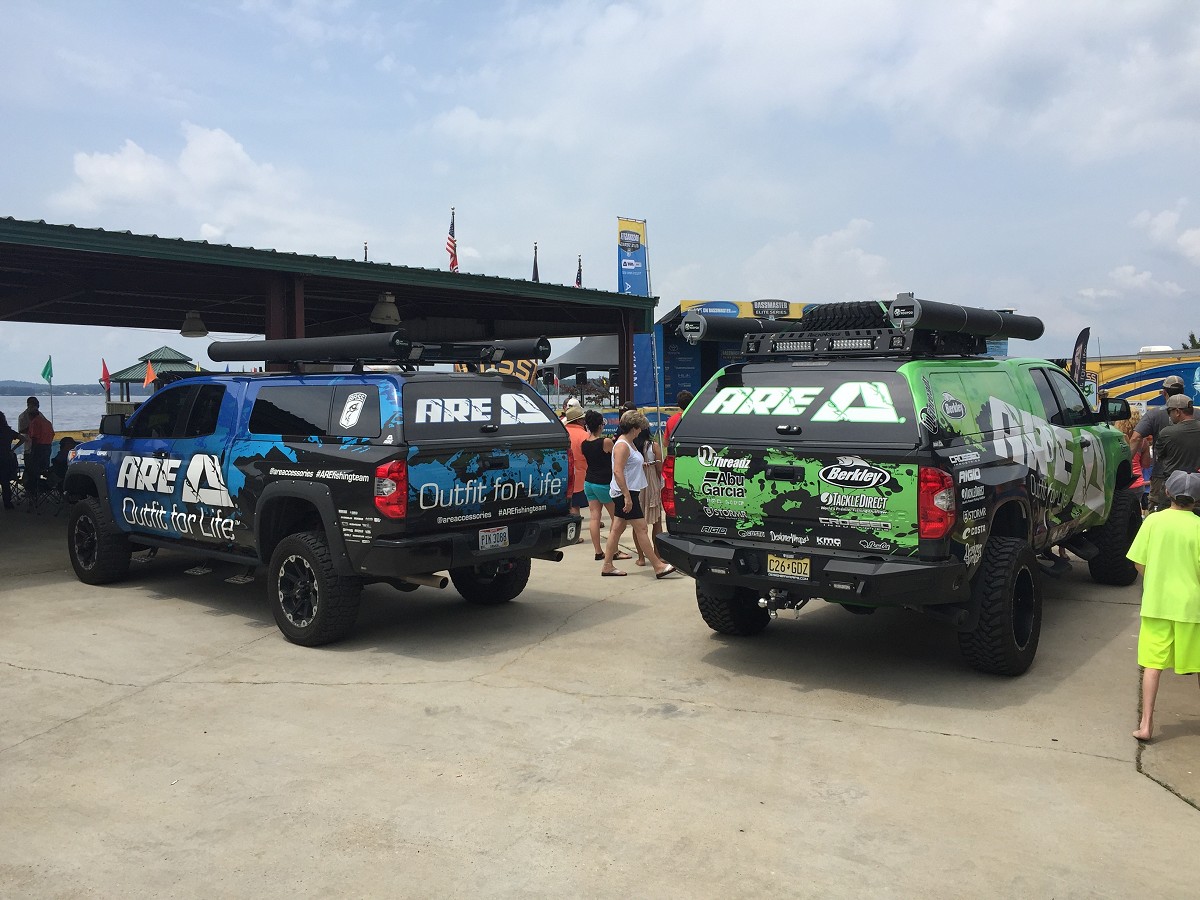 Bassmaster Many "Facts of Fishing truck in A.R.E. booth"
