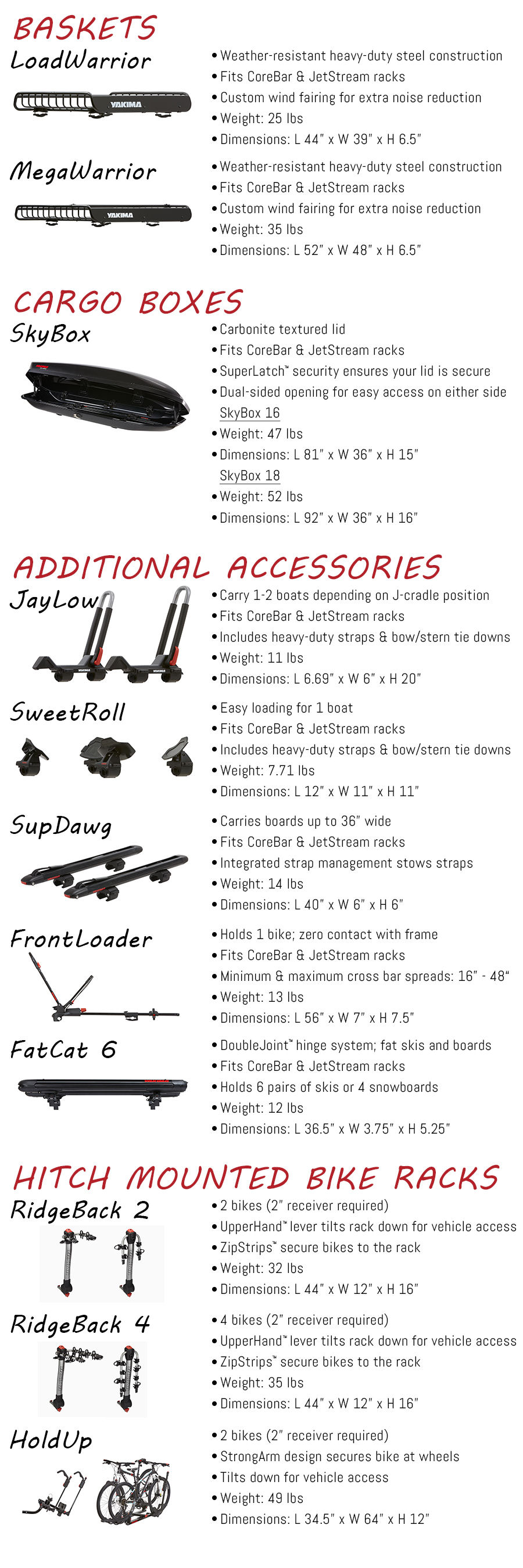 A.R.E. offers the following Yakima accessories: